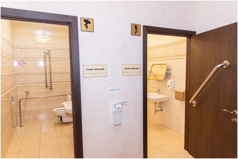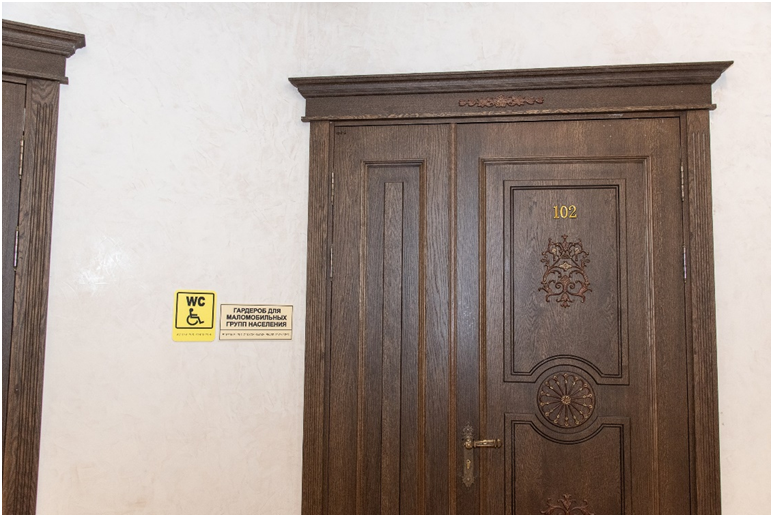 ✔ Для свободного передвижения гостей в зрительской части театра расширены дверные проемы, имеются специально оборудованные гардеробная и туалетная комнаты. Есть система для вызова помощи персонала.
