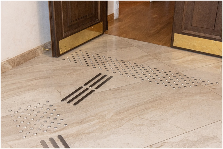✔ В зрительской части имеются тактильные указатели вдоль маршрута движения к билетной кассе, специальному гардеробу и входам в зрительный зал.